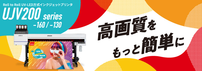 「UJV200 Series」は、当社フラグシッププリンタに搭載される「330エンジン」プリントヘッドをシングル搭載し、操作経験が少ないオペレーターでも美しく・速く・簡単にプリント成果物を制作することができるRoll to Roll UVインクジェットプリンタです。