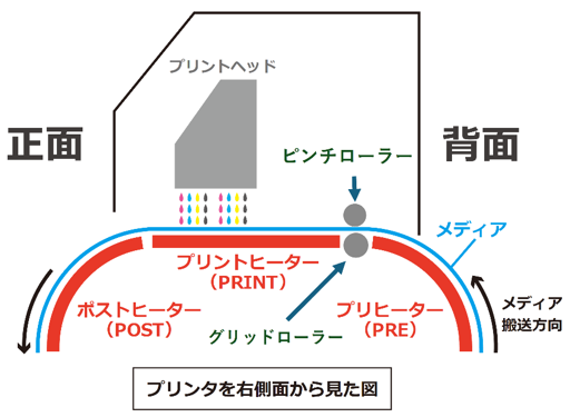 乾きが不十分な場合は、プリントヒーターの温度を上げて確認ください。
